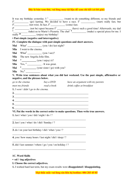 II. Complete the sentences with the past simple affirmative form of the verbs in brackets.
