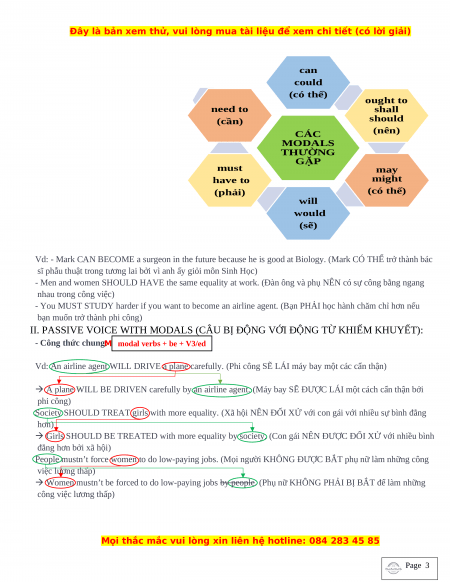 - II. PASSIVE VOICE WITH MODALS (CÂU BỊ ĐỘNG VỚI ĐỘNG TỪ KHIẾM KHUYẾT):