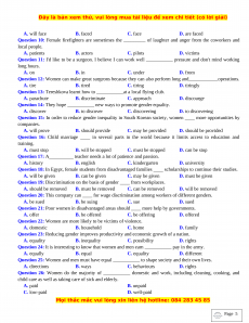 Question 3: A. delicious B. education C. dependent D. encourage Question 4: A. gender B. prefer C. equality D. prepare Question 5: A. women B. operate C. officer D. response Question 6: A. aware B. family C. planet D. married