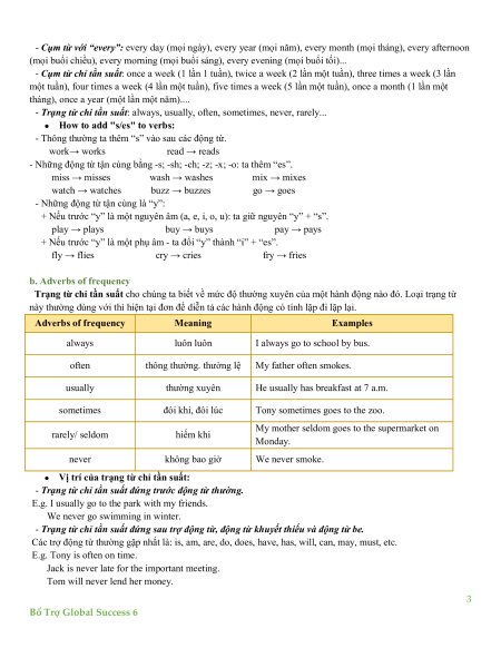 + Nếu trước “y” là một phụ âm - ta đổi “y” thành “i” + “es”. fly → flies cry → cries fry → fries b. Adverbs of frequency