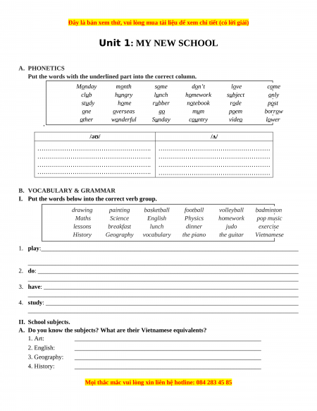 Unit 1: MY NEW SCHOOL A. PHONETICS