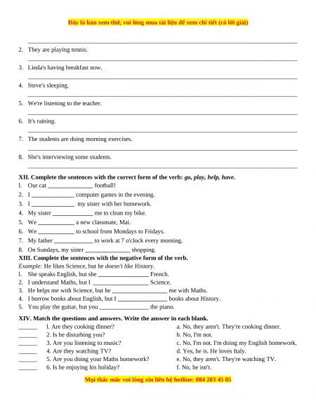 XII. Complete the sentences with the correct form of the verb: go, play, help, have.