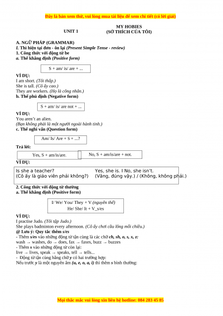 (SỞ THÍCH CỦA TÔI) A. NGỮ PHÁP (GRAMMAR)