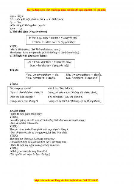 I. Thì hiện tại đơn - ôn lại (Present Simple Tense - review)
