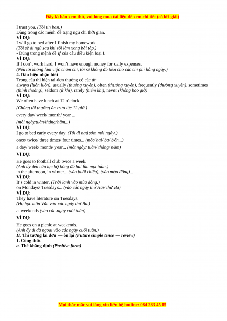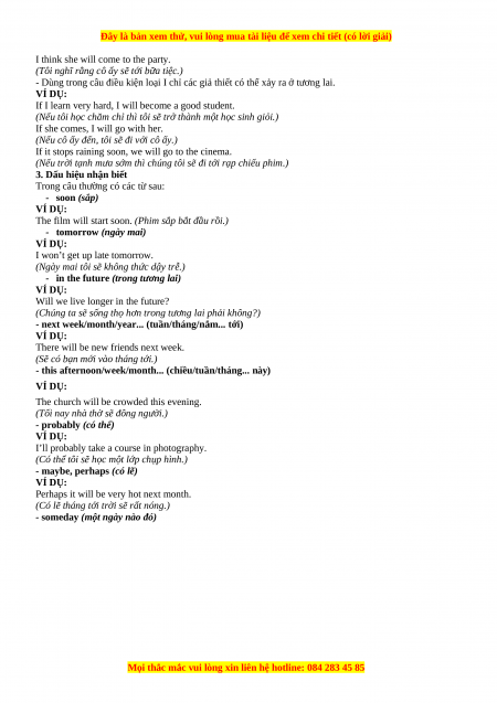 II. Thì tương lai đơn — ôn lại (Future simple tense — review) 1. Công thức