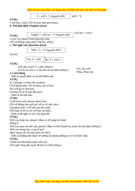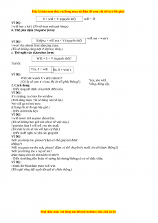 b. Thể phủ định (Negative form) will not = won’t VÍ DỤ: