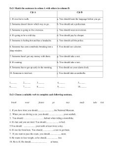 Ex1 : Use should/shouldn’t to complete each sentence.