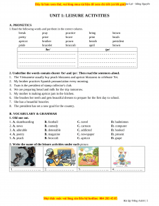 UNIT 1: LEISURE ACTIVITIES A. PHONETICS