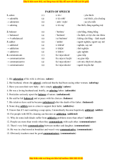 PARTS OF SPEECH 1. adore (v) /əˈdɔː/ : yêu thích → adorable (a) /əˈdɔːrəbl/ : mê thích, yêu chuộng → adoration (n) /ˌædɔːˈreɪʃn/ : sự yêu mến → adoring (a) /əˈdɔːrɪŋ/