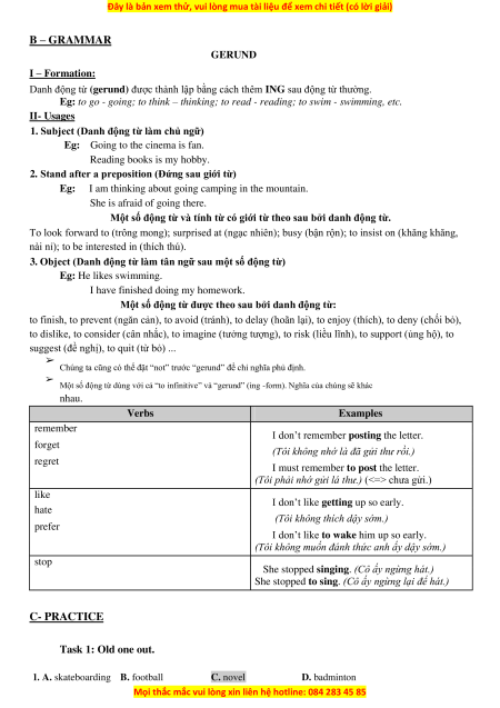 B – GRAMMAR GERUND I – Formation: