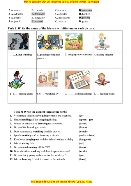 7. _______ collecting stamps 8. ___ reading books _