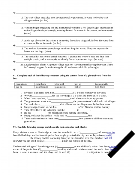 15. The craft village must also meet environmental requirements. It wants to develop craft village tourism. (so that)