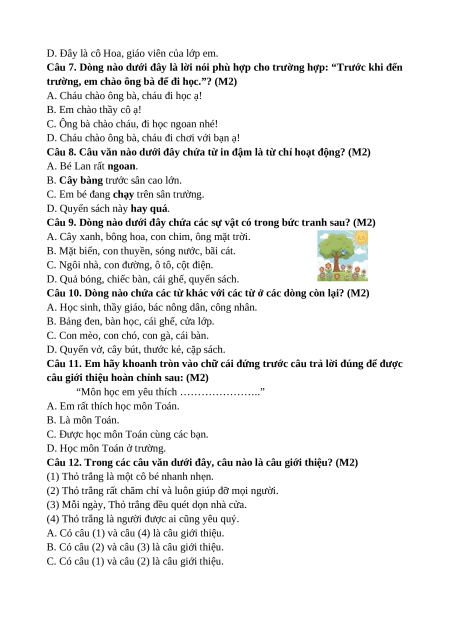 Câu 5. Câu văn nào dưới đây là câu giới thiệu? (M1)