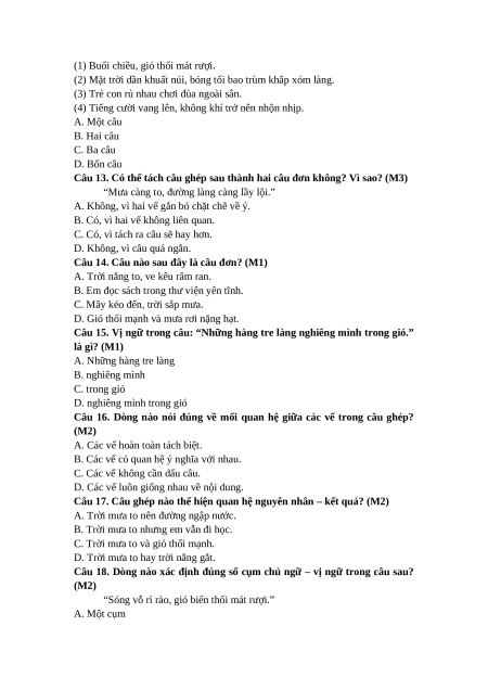 Câu 12. Đoạn văn sau có mấy câu ghép? (M3)