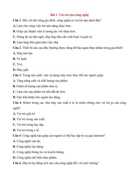 Bài 1. Vai trò của công nghệ