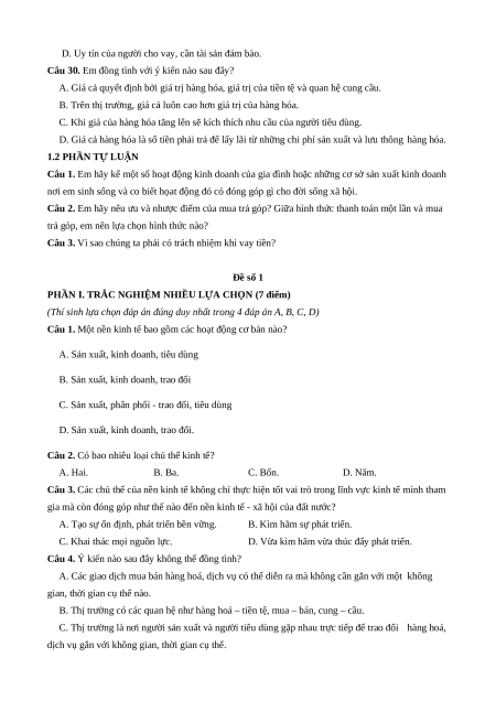 Bài tập trắc nghiệm Cuối kì 1 KTPL 10 Cánh diều (có đúng sai, trả lời ngắn)