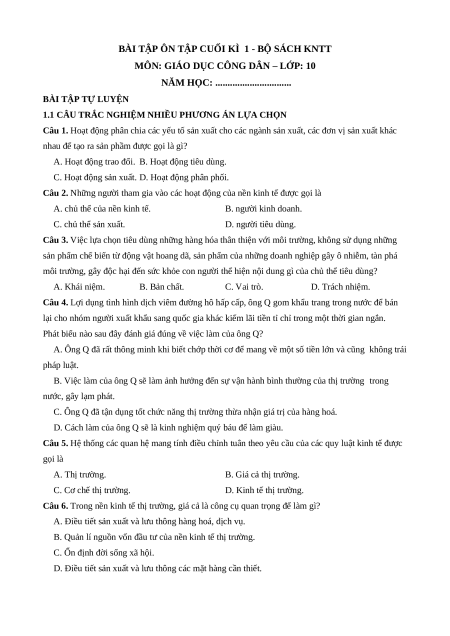 BÀI TẬP ÔN TẬP CUỐI KÌ 1 - BỘ SÁCH KNTT