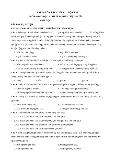 - Tailieugiaovien.com.vn giới thiệu Bài tập trắc nghiệm Cuối kì 1 KTPL 11 Chân trời sáng tạo mới nhất gồm các câu hỏi trắc nghiệm và bài tập có đúng sai, trả lời ngắn có lời giải chi tiết giúp học sinh ôn tập, chuẩn bị cho bài thi Cuối kì 1 KTPL 11.