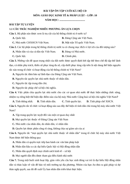 Câu 6. Nguyên tắc “mọi quyền lực nhà nước thuộc về nhân dân” trong tổ chức bộ máy nhà nước Việt