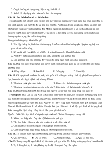 Câu 18. Tàu thuyền nước ngoài được hưởng quyền gì trong lãnh hải của quốc gia ven biển? A. Qua lại vô hại. B. Qua lại tự do.