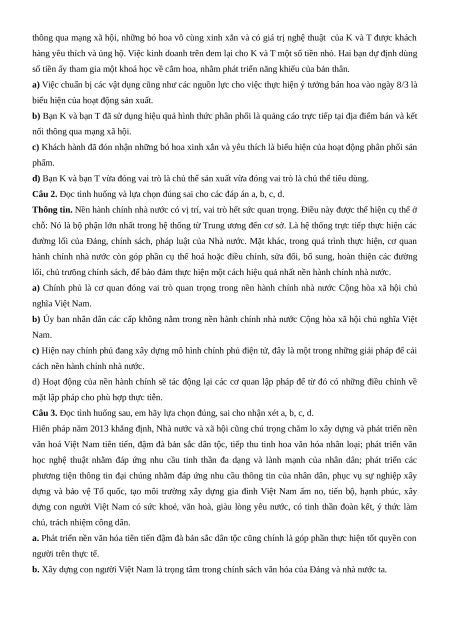 Câu 10. Chế độ, chính sách của nước Cộng hoà xã hội chủ nghĩa Việt Nam về kinh tế, văn hoá, xã hội,