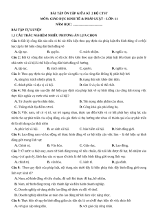 Bài tập trắc nghiệm Giữa kì 2 KTPL 11 Chân trời sáng tạo (có đúng sai, trả lời ngắn)