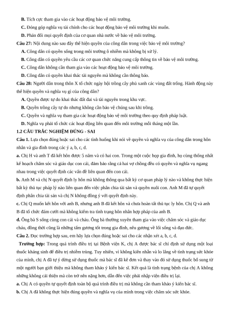 Câu 23: Một trong những quyền của công dân trong việc bảo vệ môi trường và tài nguyên thiên nhiên là