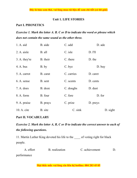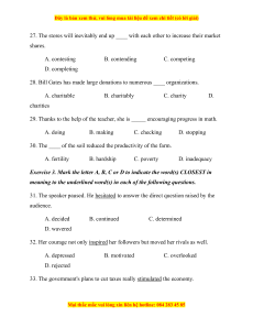 Exercise 1. Mark the letter A. B. C or D to indicate the word or phrase which