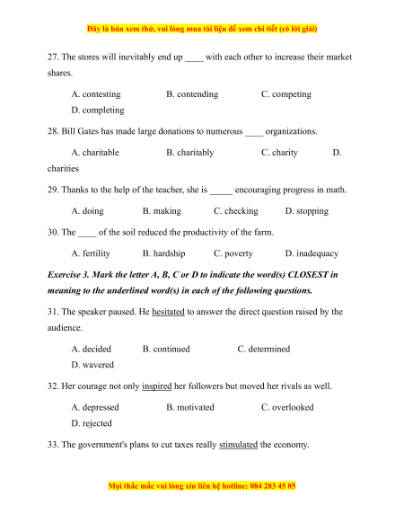 Exercise 3. Mark the letter A, B, C or D to indicate the word(s) CLOSEST in
