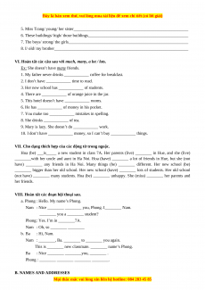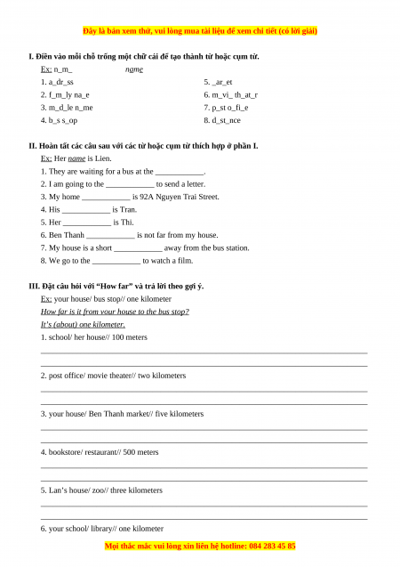 3. My home ____________ is 92A Nguyen Trai Street. 4. His ____________ is Tran. 5. Her ____________ is Thi.