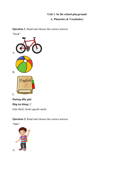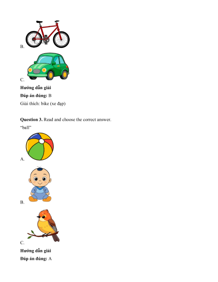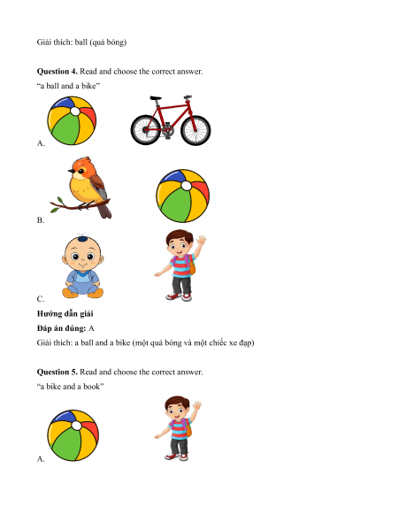 Question 4. Read and choose the correct answer. “a ball and a bike” A. B. C. Hướng dẫn giải Đáp án đúng: A