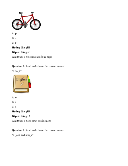 Question 5. Read and choose the correct answer. “a bike and a book” A. B. C. Hướng dẫn giải Đáp án đúng: C