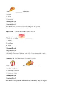 Question 2. Look and choose the correct answer. A. pasta B. pizza C. popcorn Hướng dẫn giải Đáp án đúng: C