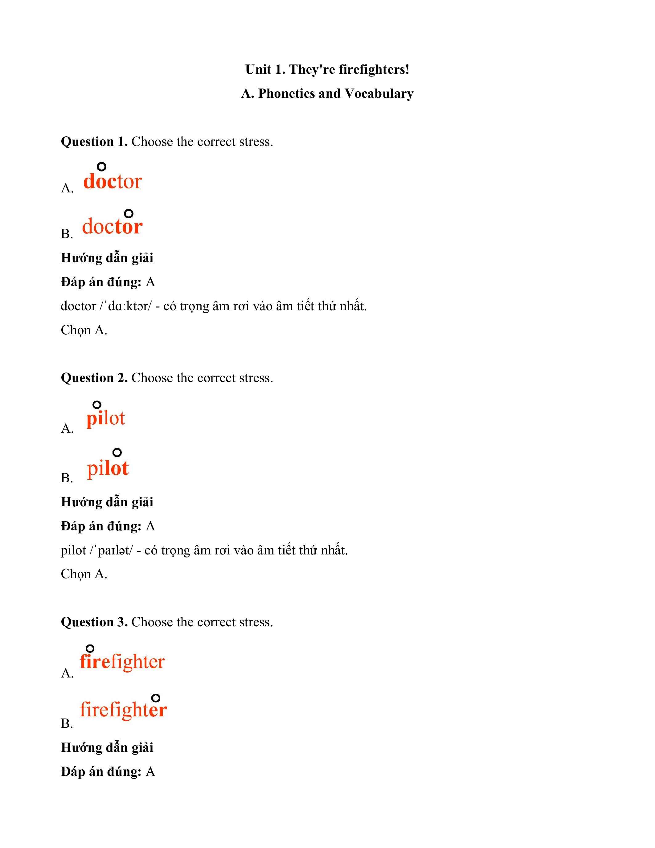 Question 2. Choose the correct stress. A. B. Hướng dẫn giải Đáp án đúng: A