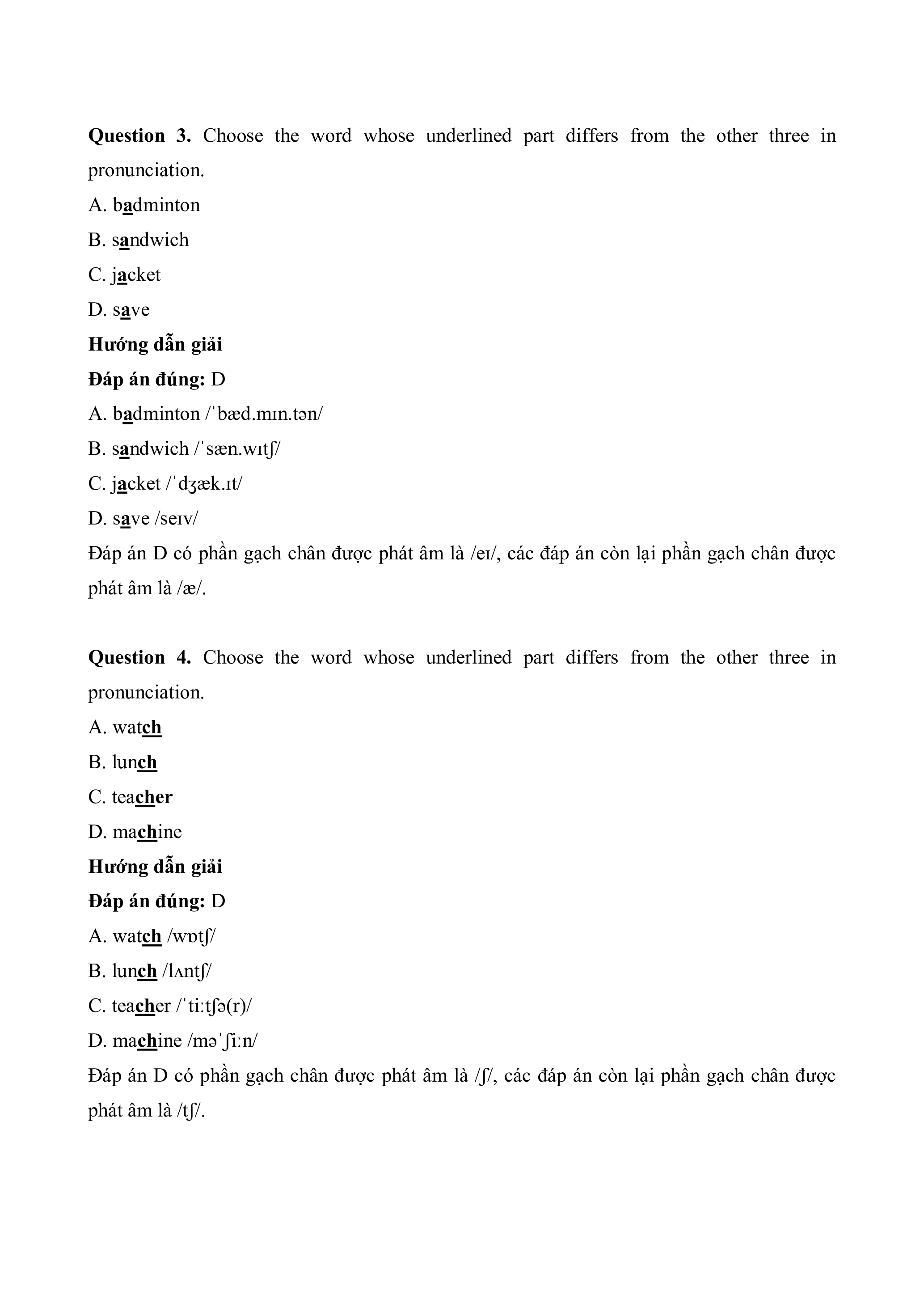 Question 3. Choose the word whose underlined part differs from the other three in pronunciation. A. badminton B. sandwich C. jacket D. save Hướng dẫn giải Đáp án đúng: D