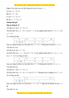 Dựa vào bảng xét dấu ta có tam thức y = x2 – 2x + 3 nhận giá trị dương với mọi x ℝ Vậy đáp án C sai.