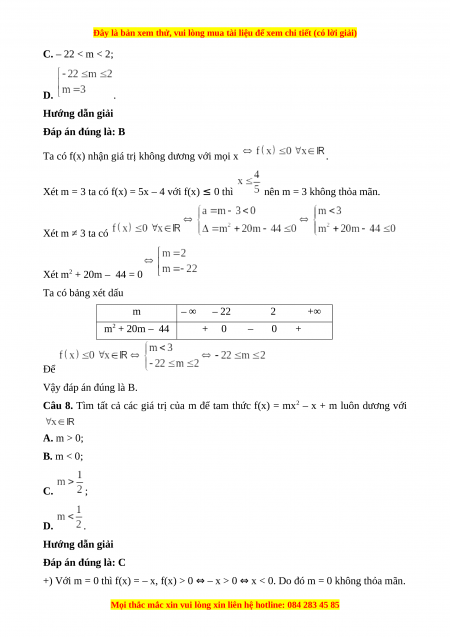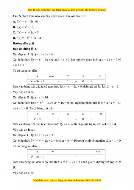 Câu 5. Tam thức nào sau đây nhận giá trị âm với mọi x < 1