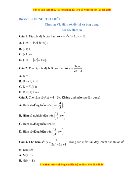 . Trong các điểm sau đây, điểm nào thuộc đồ 2 2x − 3x +1 thị hàm số: A. M(2; 3); B. N(0; – 1);
