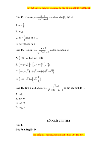 có tập xác định là ℝ. 2 x + 2x − m + 1 A. m ≥ 1; B. m < 0; C. m > 2; D. m ≤ 3.
