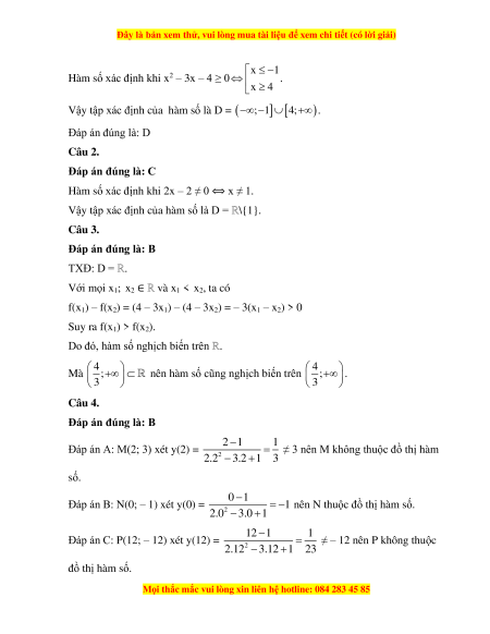 Câu 3. Cho hàm số f(x) = 4 – 3x. Khẳng định nào sau đây đúng? 4