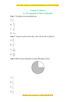 Câu 6 . Viết số nguyên – 16 dưới dạng phân số ta được: −16 A. 0 16 B. 1 −16 C. 1 16 D. 0
