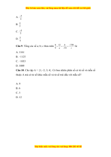 Câu 10. Cho tập A = {1;−2; 3; 4}. Có bao nhiêu phân số có tử số và mẫu số
