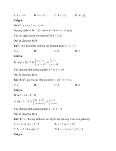 Tập nghiệm của phương trình là S = {2} Đáp án cần chọn là: A 2