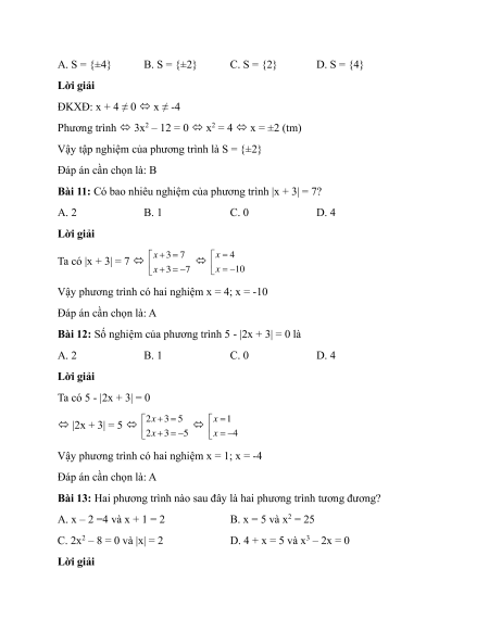 Hai phương trình tương đương là hai phương trình có cùng tập nghiệm Đáp án cần chọn là: C