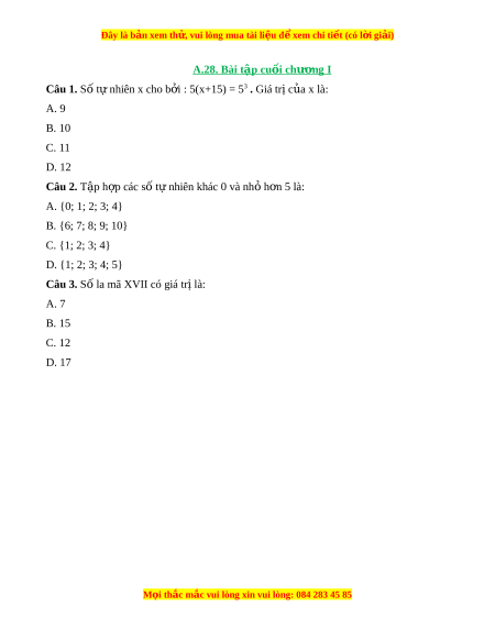 Đây là bản xem th , vu ử i lòng mua tài li u ệ đ xe ể m chi ti t (c ế ó l i ờ gi i ả ) A .28. B ài t p cu ậ i ố chư ng ơ I Câu 1. Số t nhi ự ên x cho b i
