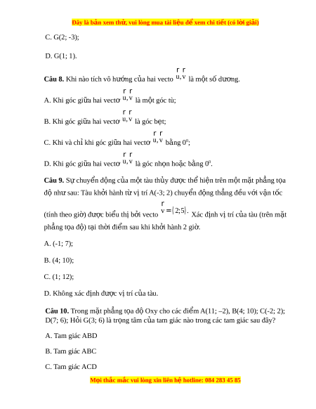 Đây là bản xem th , vu ử i lòng mua tài li u ệ đ xe ể m chi ti t (c ế ó l i ờ gi i ả ) C. G(2; -3); D. G(1; 1). r r