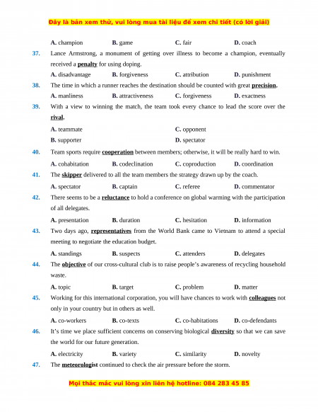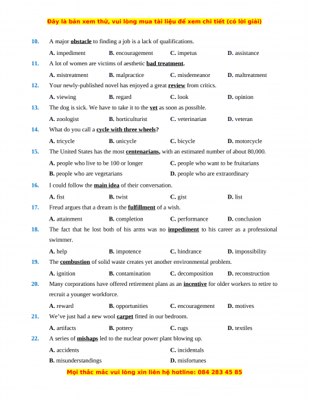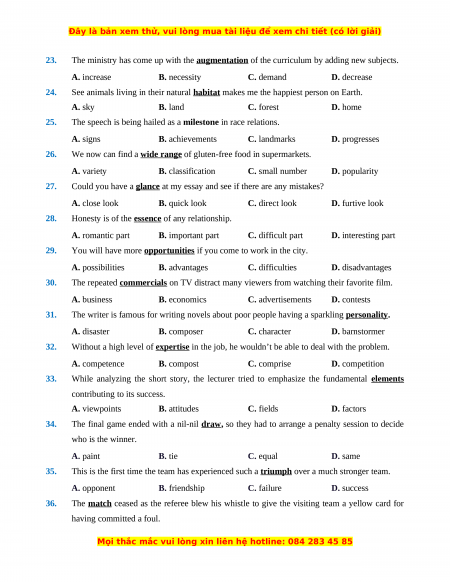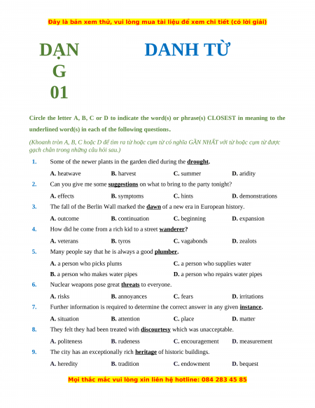 (Khoanh tròn A, B, C hoặc D để tìm ra từ hoặc cụm từ có nghĩa GẦN NHẤT với từ hoặc cụm từ được