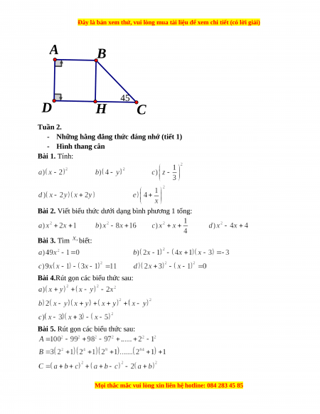 TUẦN 4. - Những hằng đẳng thức đáng nhớ....................................................................23