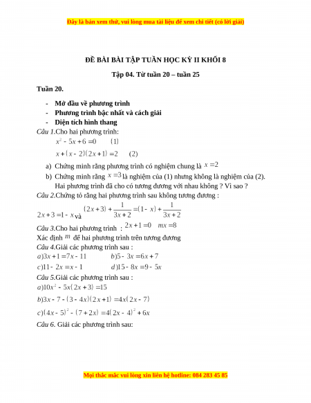 - Tailieugiaovien.com.vn giới thiệu bộ bài tập cuối tuần kì 2 môn Toán lớp 8 mới nhất nhằm giúp Giáo viên có thêm tài liệu tham khảo Toán lớp 8.