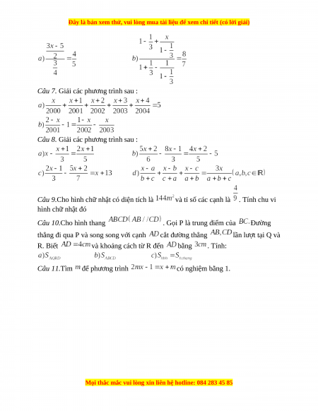 Câu 8. Giải các phương trình sau :